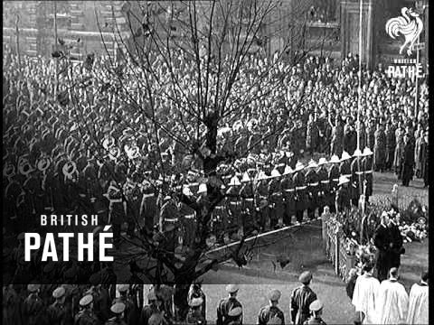 Armistice 1945 }}- Full title reads: "ARMISTICE DAY 1945". Various. Long shot of Whitehall on Armistice Day. King George VI laying wreath on the Cenotaph. Queen Mary, Queen ...